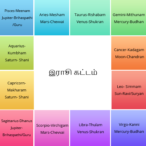 Each house is called a Rashi. So there are 12 rashis or 12 houses